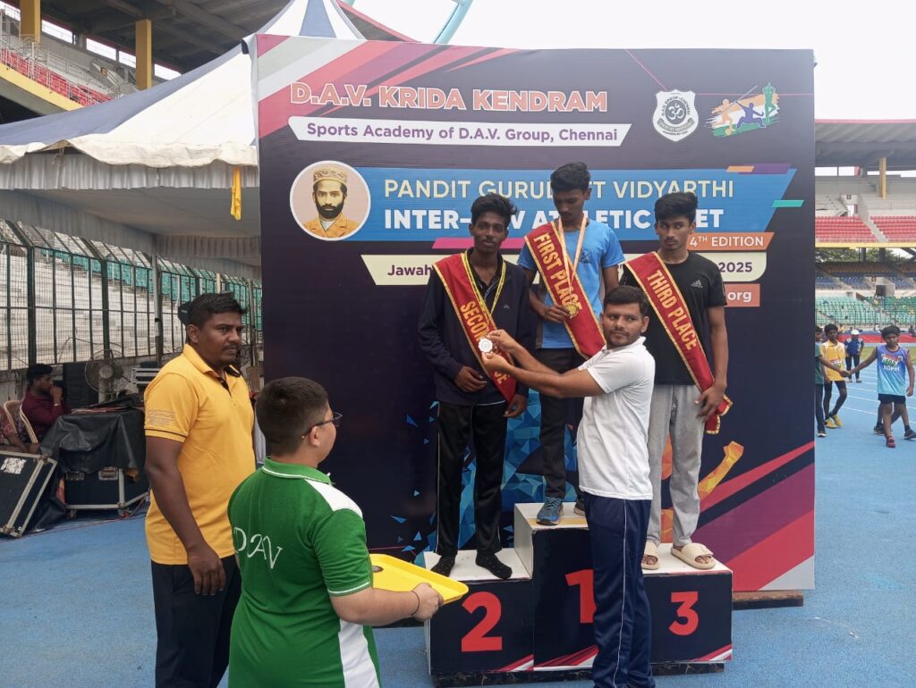 M.Prem of 11C got II Place in Long jump in the Super senior Boys category in the Pandit Gurudutt Vidyarthi Inter Dav Athletics meet held at Nehru Stadium on 02.09.25.