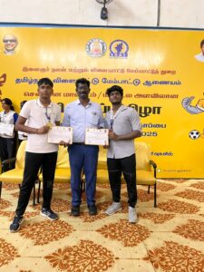 Pravin Kumar of 12 C won III place in Thodumurai in the CM trophy 🏆 Silambam Competition in the 75kg+category with 1000Rs Cash Prize held at the Jawaharlal Nehru Indoor stadium on 04/09/2025.