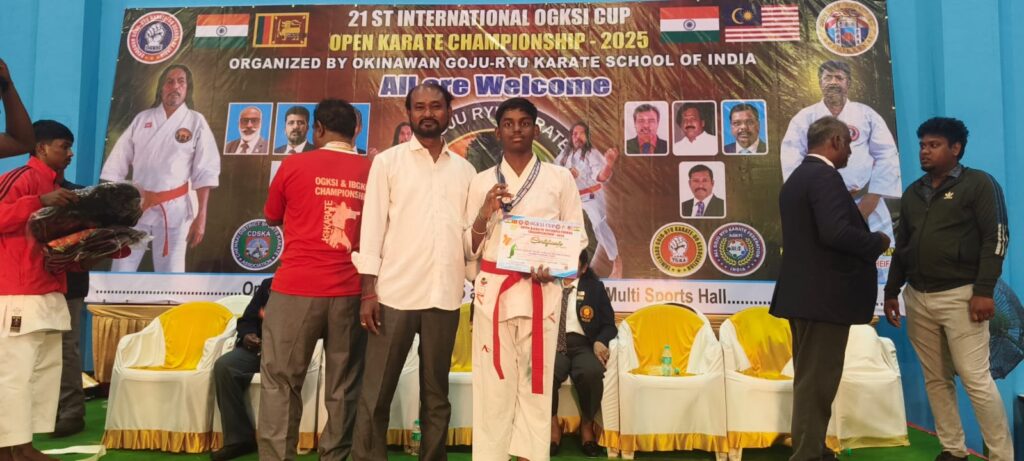 S.S Linganath of 9A Won III Place in the 21st Open Karate International Championship 2025 Organised by Okinawa Goju Ryu Karate Do School of India at ICF Chennai on 11.10.25.