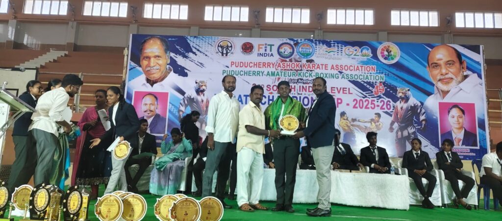 S.S Linganath of 9A Won I Place in the Individual Kata in the 3rd South India level Karate Championship 2025-2026 organised by Puducherry Amateur Kickboxing Association on 12.10.25 at Puducherry.